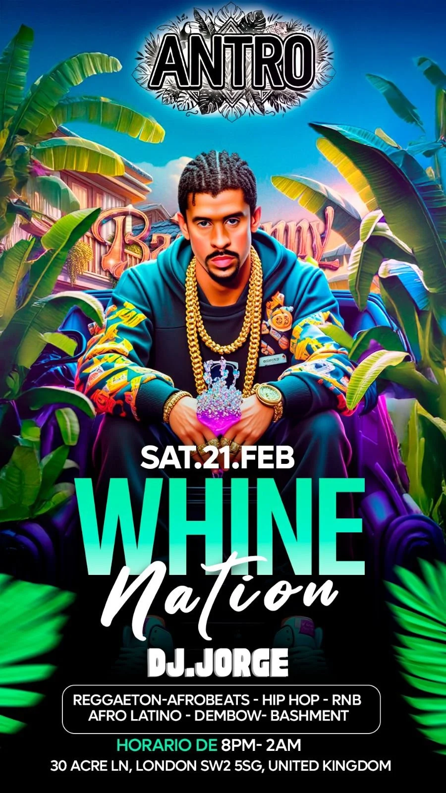 Get ready to bring the heat to Brixton! This Friday, Antro presents Whine Nation, an unforgettable night of non-stop vibes and heavy rhythms hosted by the incredible DJ Jorge.